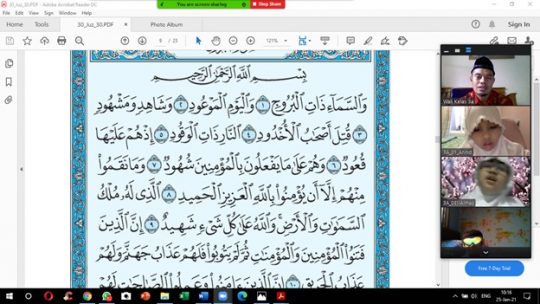 Suasana pembelajaran online hampir sama dengan metode pembelajaran offline. Siswa diajarkan cara membaca Nurul Bayan dengan metode offline, namun yang membedakan adalah pertemuan dilakukan melalui aplikasi zoom.