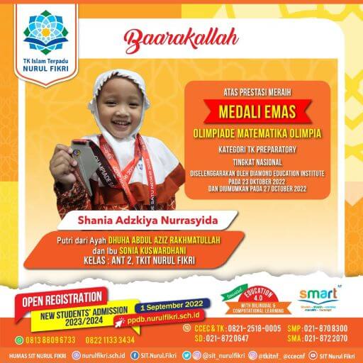 Shania, Siswa TK Ini Berhasil Raih Emas di Olimpiade Matematika SIT NURUL FIKRITK Shania, Siswa TK Ini Berhasil Raih Emas di Olimpiade MatematikaJAKARTA - Salah satu siswa dari TKIT Nurul Fikri, Shania Adzkiya Nurrasyida, berhasil meraih medali…HUMASOctober 27, 2022