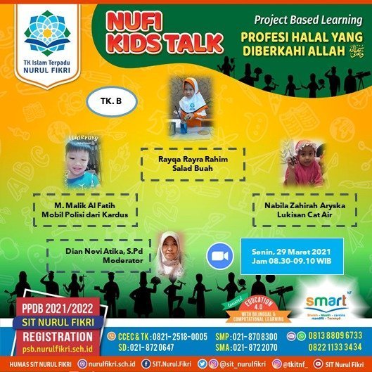 Tema Nufi Kids Talk Kali Ini, Profesi Halal Yang diberkahi Allah SIT NURUL FIKRITK Tema Nufi Kids Talk Kali Ini, Profesi Halal Yang diberkahi AllahDEPOK - Program Project Based Learning atau PjBL di bulan kedua sudah dilaksanakan dan berjalan lancar.…HUMASMarch 31, 2021