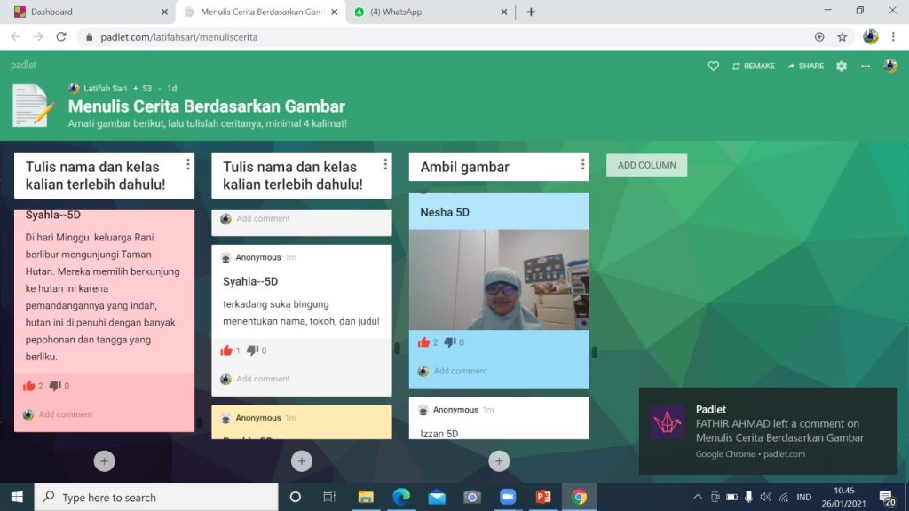 Menulis Cerita Berdasarkan Gambar Via Padlet SDSIT NURUL FIKRI Menulis Cerita Berdasarkan Gambar Via PadletDEPOK - Banyak cara agar belajar terasa menyenangkan, apalagi dimasa pandemi yang semua kegiatan terpaksa…HUMASJanuary 26, 2021