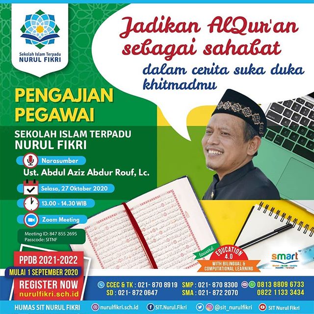 Pengajian Pegawai NF Bersama Ustaz Abdul Aziz Abdur Rouf News VideoSIT NURUL FIKRIVideos Pengajian Pegawai NF Bersama Ustaz Abdul Aziz Abdur RoufSeluruh pegawai SIT Nurul Fikri mengikuti pengajian pegawai secara online. Bertemakan Jadikan Alquran Sebagai Sahabat…HUMASOctober 27, 2020