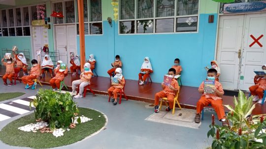 “TKIT Nurul Fikri melaksanakan Maulid Nabi bersamaan dengan Puncak Bulan Bahasa secara offline di sekolah. Ananda yang di rumah mendapat pengalaman yang sama dengan teman-teman yang belajar di sekolah, tetap mengikuti acara Maulid Nabi dan Puncak Bulan Bahasa yang berisi kegiatan Silent Reading dan mendengarkan guru bercerita tentang kisah Rasulullah,” terang Titin Nurhasanah, Humas TKIT Nurul Fikri.
