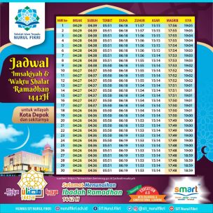 DEPOK – sebentar lagi umat muslim dunia akan menunaikan ibadah suci Ramadhan 1442 H. Untuk memudahkan warga Depok, nurulfikri.sch.id menyajikan informasi seputar jadwal imsak sebagai pengingat sahur dan jadwal buka puasa sebagai pengingat berbuka.