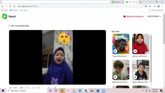 DEPOK – Memberikan pembelajaran online yang lebih variatif, interaktif, atraktif, dan efektif, TKIT Nurul Fikri menggunakan aplikasi pembelajaran online flipgrid untuk materi Reading Culture untuk para siswa kelas TK A dan B dengan menggunakan aplikasi zoom, Selasa (26/1/2021).